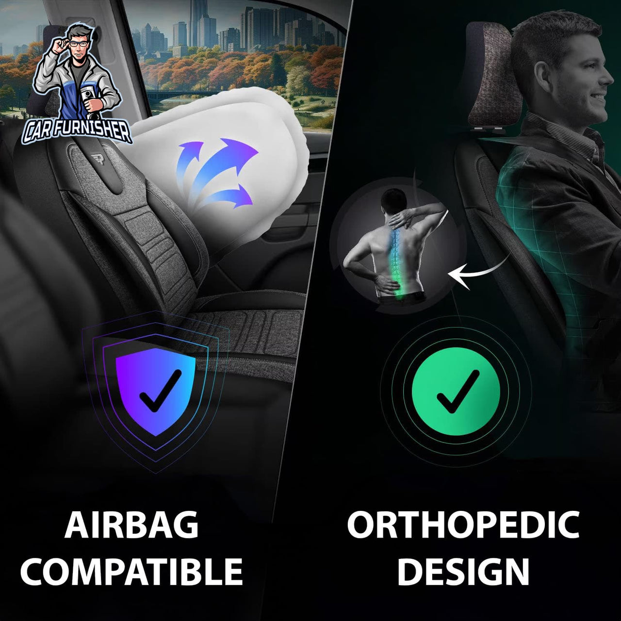Our car seat cover set is a complete collection designed for those who seek a seamless integration of functionality and style. It includes: