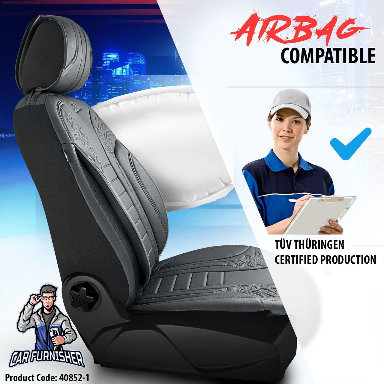 Your vehicle deserves only the best when it comes to protection. Our covers are crafted to safeguard your original seats from stains, mold, and bacteria, ensuring they remain in impeccable condition. The airbag compatibility, certified by TÜVRheinland, guarantees that your safety is never compromised, allowing side airbags to deploy seamlessly when needed.